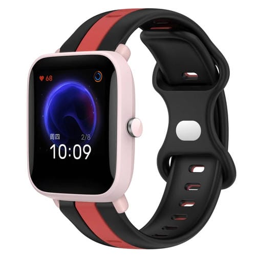 Correa de Reloj Amazfit Pop Pro 20mm Silicona Dos Colores (Negro + Rojo)