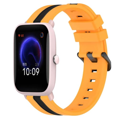 Correa de Reloj Amazfit Pop Pro 20mm Silicona Dos Colores Vertical (Amarillo + Negro)