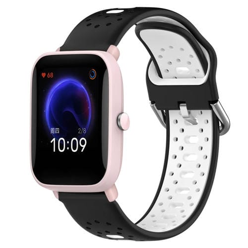Correa de Reloj Amazfit Pop Pro 20mm Silicona Deportiva Transpirable Perforada (Blanco + Negro)