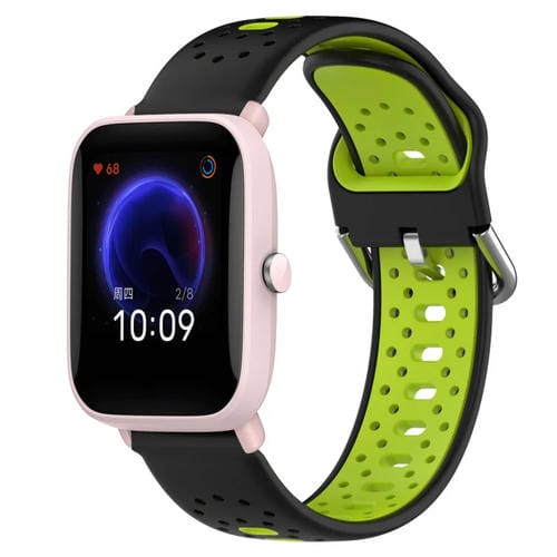 Correa de Reloj Amazfit Pop Pro 20mm Silicona Deportiva Perforada (Negro + Lima)