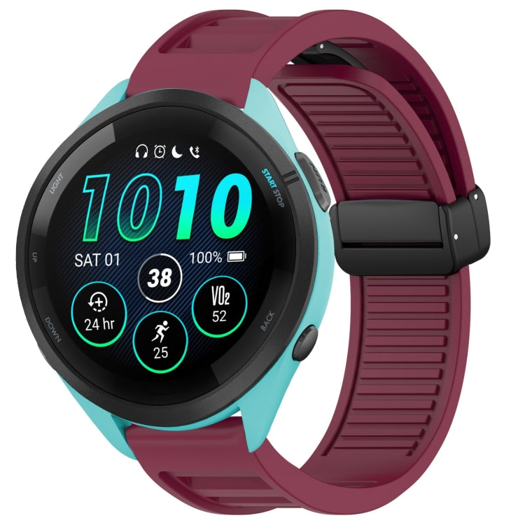 Correa de Reloj de Silicona para Garmin Forerunner 265 con Hebilla Magnética Plegable 22mm (Rojo Vino)