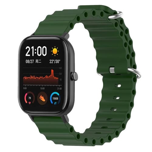 Correa de Silicona para Amazfit GTS 4 Miin 20mm Estilo Océano (Verde Militar)