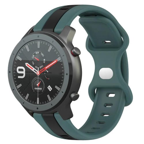Correa de Reloj Amazfit GTR 47mm 22mm Silicona Dos Colores Hebilla de Mariposa (Verde + Negro)