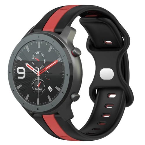 Correa de Reloj Amazfit GTR 47mm 22mm silicona dos colores con hebilla de mariposa (Negro + Rojo)