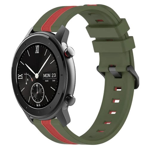 Correa de Reloj para Amazfit GTR 3 22mm Silicona Dos Colores Vertical (Verde Militar + Rojo)