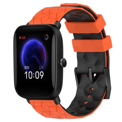 Banda de Reloj para Amazfit Pop 20mm Textura de Fútbol Silicona Dos Colores (Naranja + Negro)