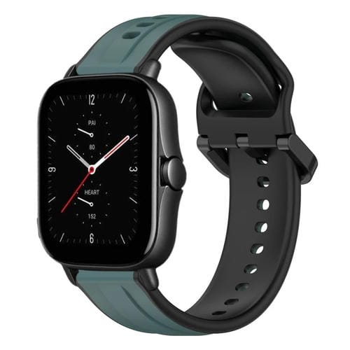 Correa de Silicona para Amazfit GTS 2 20mm con Bucle Convexo (Verde Oscuro + Negro)