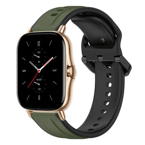 Correa de Reloj Amazfit GTS 4 Mini 20mm Convex Loop Silicona Dos Colores (Verde Oliva + Negro)