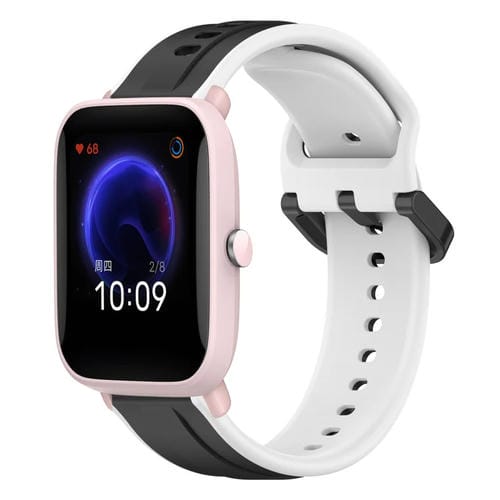 Correa de Reloj para Amazfit Pop Pro Silicona Dos Colores Bucle Convexo 20mm (Negro + Blanco)