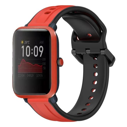 Correa de Reloj Amazfit Bip 1S Silicona Dos Colores con Bucle Convexo 20mm (Rojo + Negro)