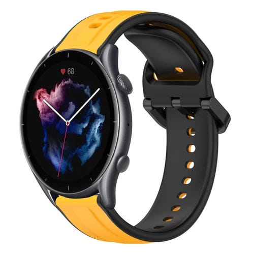 Correa de Reloj Silicona para Amazfit GTR 3 Pro 22mm Dos Colores con Bucle Convexo (Amarillo + Negro)