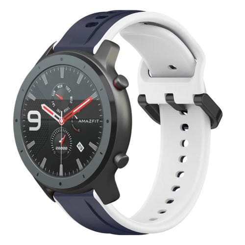 Correa de Silicona Para Amazfit GTR 47mm 22mm Convex Loop Dos Colores (Azul Medianoche + Blanco)