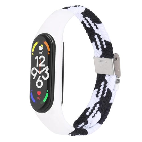 Correa de Reloj para Xiaomi Mi Band 7 Trenzada de Nailon Ajustable (Blanco Negro)