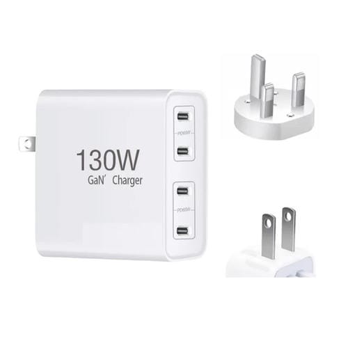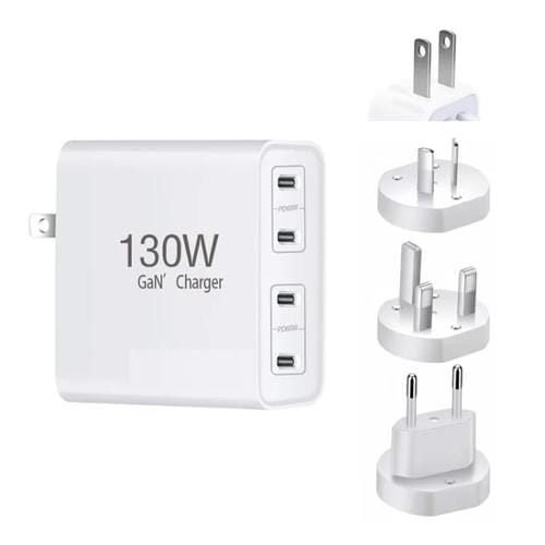 Cargador Gan130W Tipo C 4 Puertos USB-C PD65W/PD30W para Serie de Portátiles Enchufe AU/US