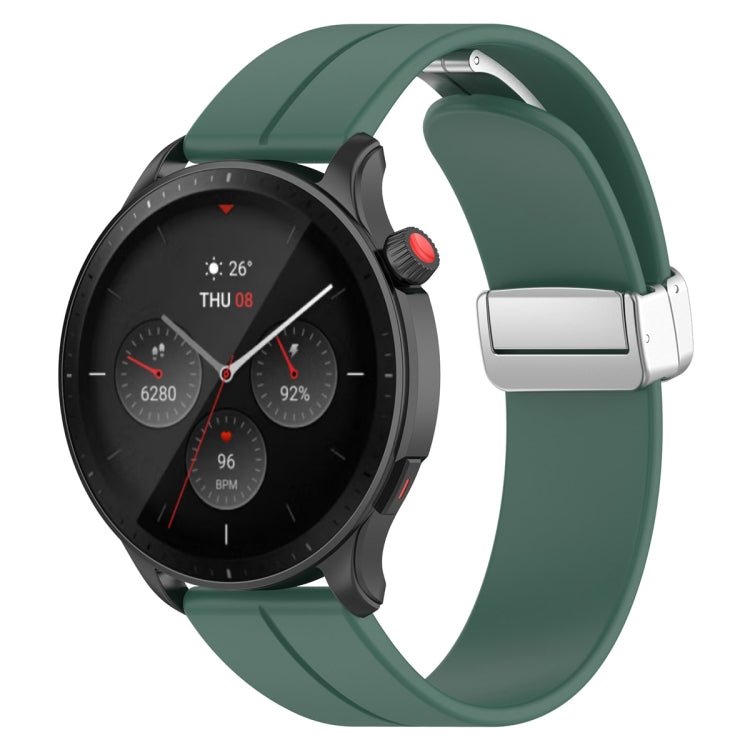 Correa de Silicona para Amazfit GTR 4 con Cierre Plegable Magnético y Hebilla Plateada (Verde Oscuro)