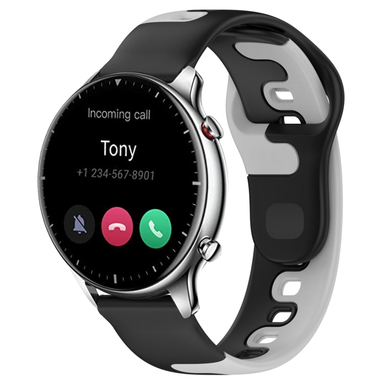Para Amazfit Gtr 2E Correa de Reloj de Silicona de Doble Color de 22mm (Negro + Gris)