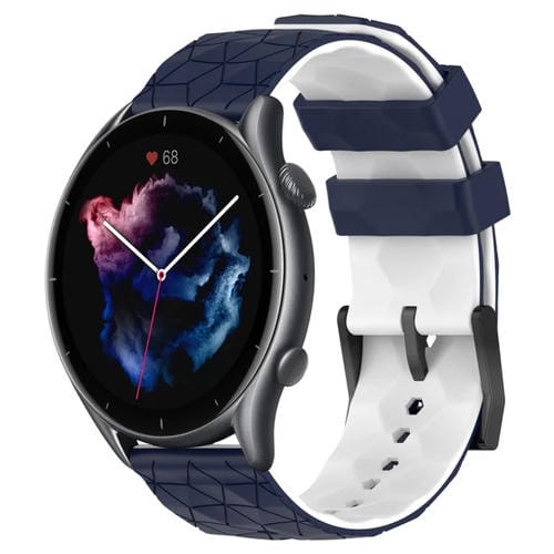 Banda de Reloj Silicona para Amazfit GTR 3 Pro 22mm Textura de Fútbol (Azul Medianoche + Blanco)