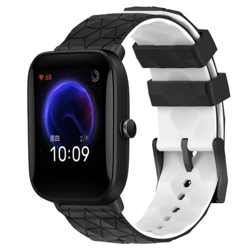 Banda de Reloj para Amazfit Pop 20mm Textura de Fútbol Silicona Dos Colores (Negro + Blanco)