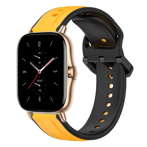 Correa de Silicona para Amazfit GTS 2 con Bucle Convexo de 20mm (Amarillo + Negro)