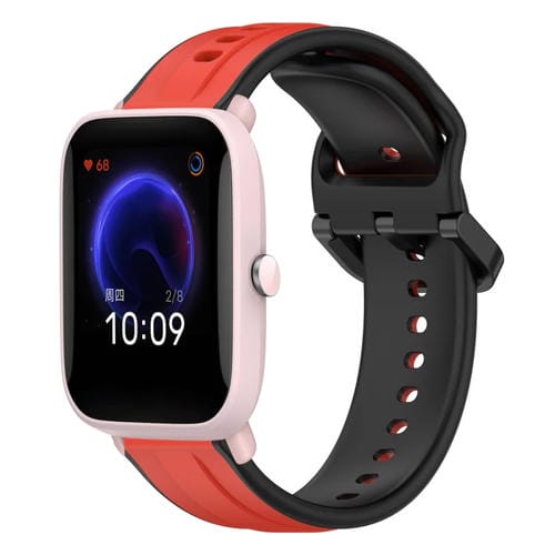 Correa de Reloj 20mm para Amazfit Pop Convex Loop Silicona Dos Colores (Negro + Rojo)