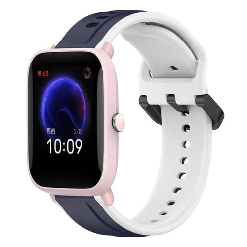 Correa de Reloj Amazfit Pop Pro silicona dos colores 20mm (Azul Medianoche + Blanco)