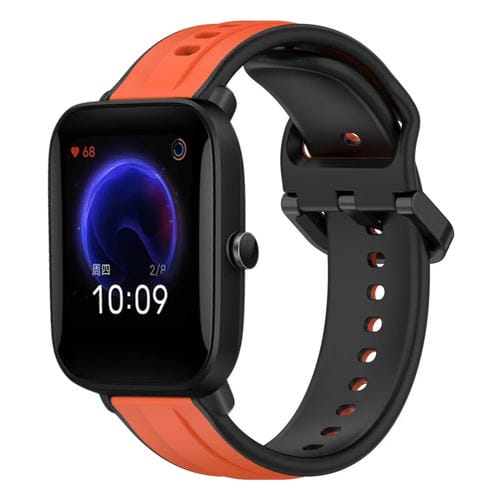 Correa de Reloj Amazfit Pop 20mm Convex Loop Silicona Dos Colores (Naranja + Negro)