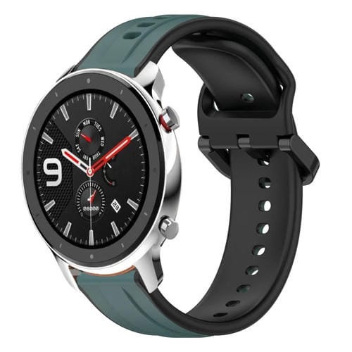 Correa de Reloj para Amazfit GTR 47mm 22mm Silicona Dos Colores (Verde Oscuro + Negro)