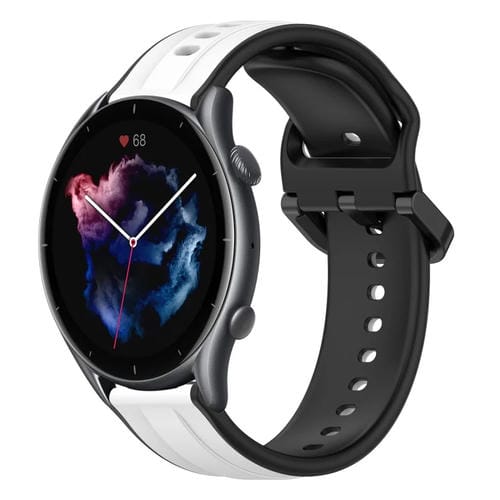 Correa de Silicona para Amazfit GTR 3 con Bucle Convexo de 22mm (Blanco + Negro)