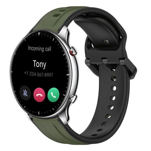 Correa de Silicona para Amazfit GTR 47mm 22mm Convex Loop Dos Colores (Verde Oliva + Negro)