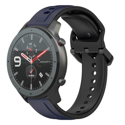 Correa de Reloj para Amazfit GTR 47mm 22mm Convex Loop Silicona Dos Colores (Azul Medianoche + Negro)