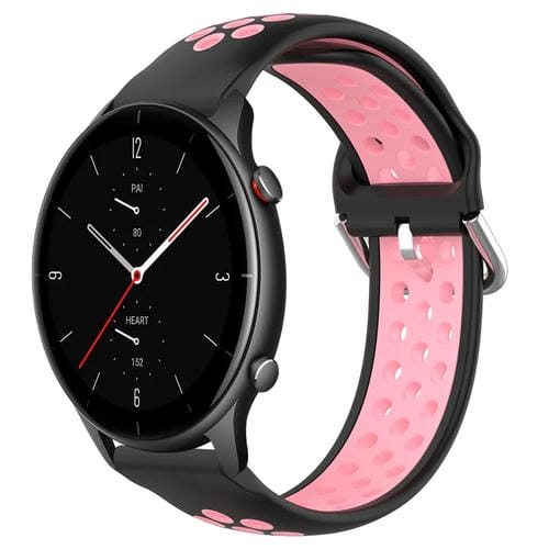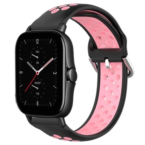Correa de Reloj Amazfit GTR 2E 22mm Silicona Deportiva Transpirable Perforada (Negro + Rosa)