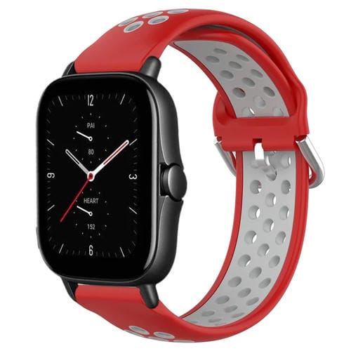 Correa de Reloj Silicona Deportiva Amazfit GTS 20mm Transpirable Perforada (Rojo + Gris)