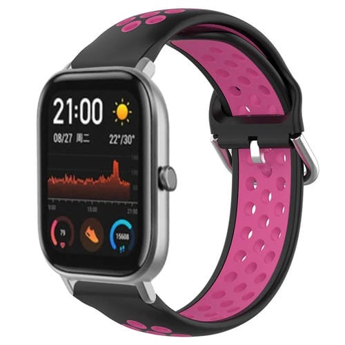 Banda de Reloj Amazfit Bip 1S 20mm silicona deportiva transpirable perforada (Negro + Rosa)