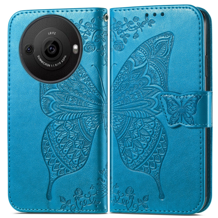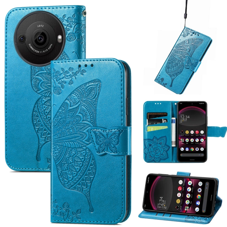 Estuche para teléfono Sharp Aquos R8 Pro Butterfly Love Flower en cuero en relieve (Azul)
