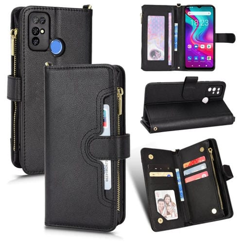 Funda Cuero con Cremallera para Doogee S88 Pro y S88 Plus Litchi Texture (Negro)