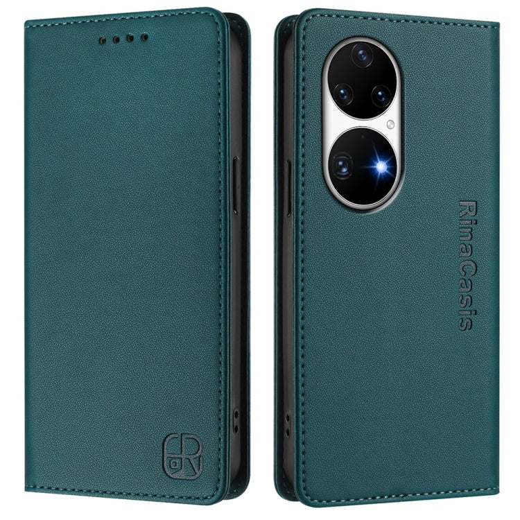 Funda de Cuero Huawei P50 Pro Rc01 con Doble Pliegue y Succión Magnética (Verde Oscuro)