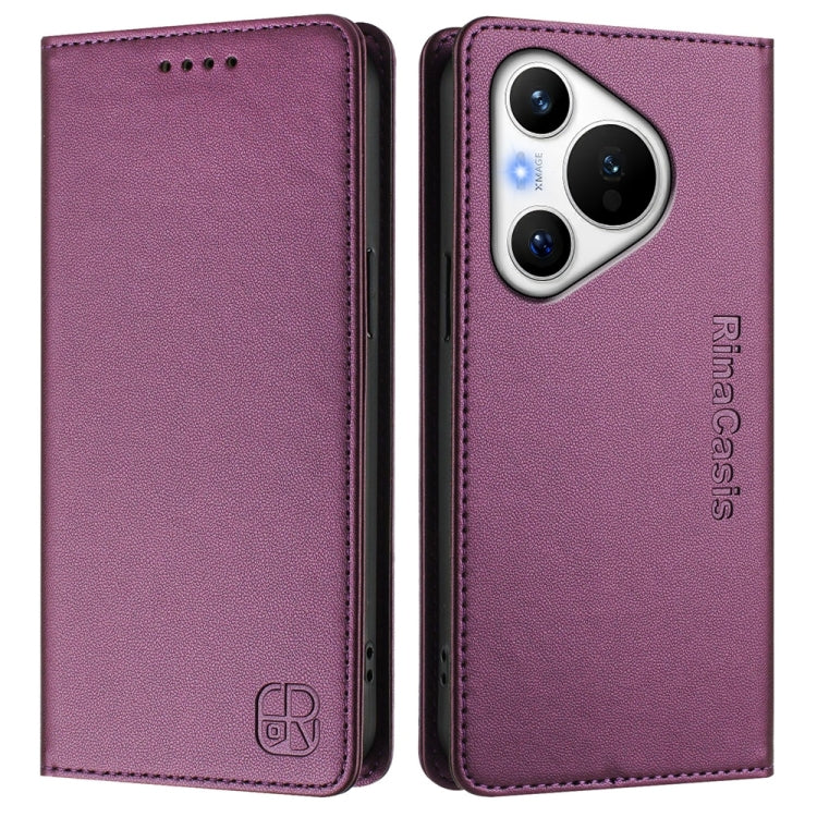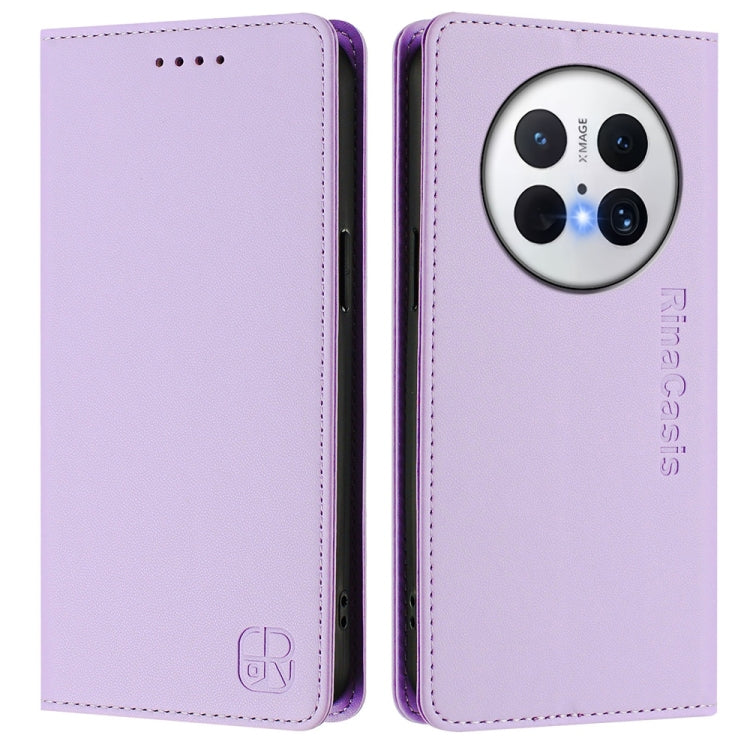 Funda de Cuero con Doble Pliegue y Succión Magnética Rfid para Huawei Pura 70 Rc01 (Morado Claro)