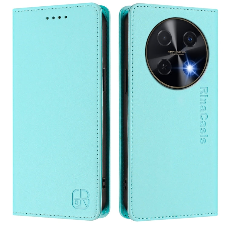 Funda de Cuero con Doble Pliegue y Succión Magnética Rfid para Huawei P50 Rc01 (Verde Menta)