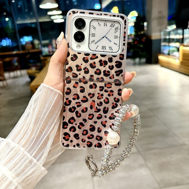 Funda para Teléfono Huawei Pocket 2 con Diseño de Leopardo y Plumas y Pulsera Integrada (Marrón)
