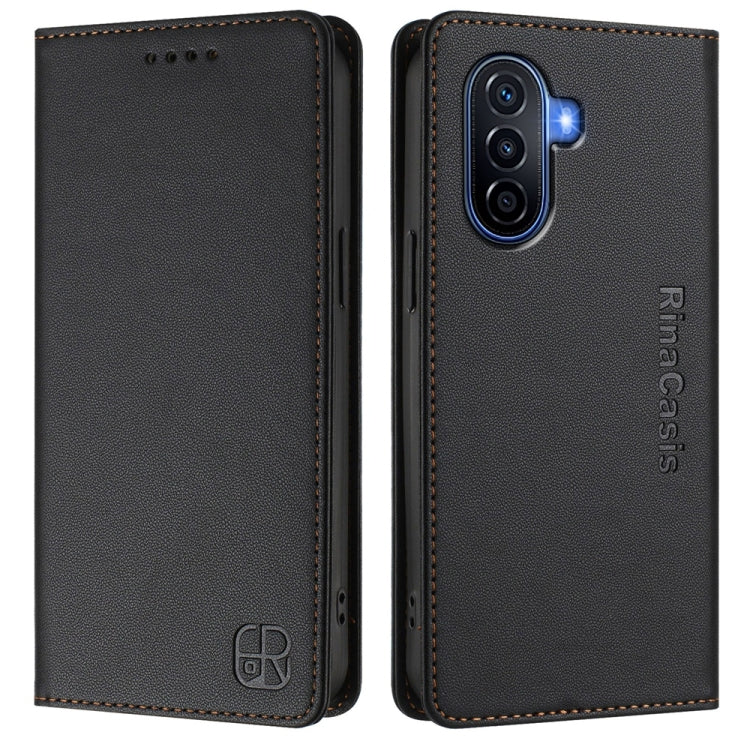 Funda de Cuero Huawei Nova 9 Rc01 con Doble Pliegue y Succión Magnética Rfid (Negra)