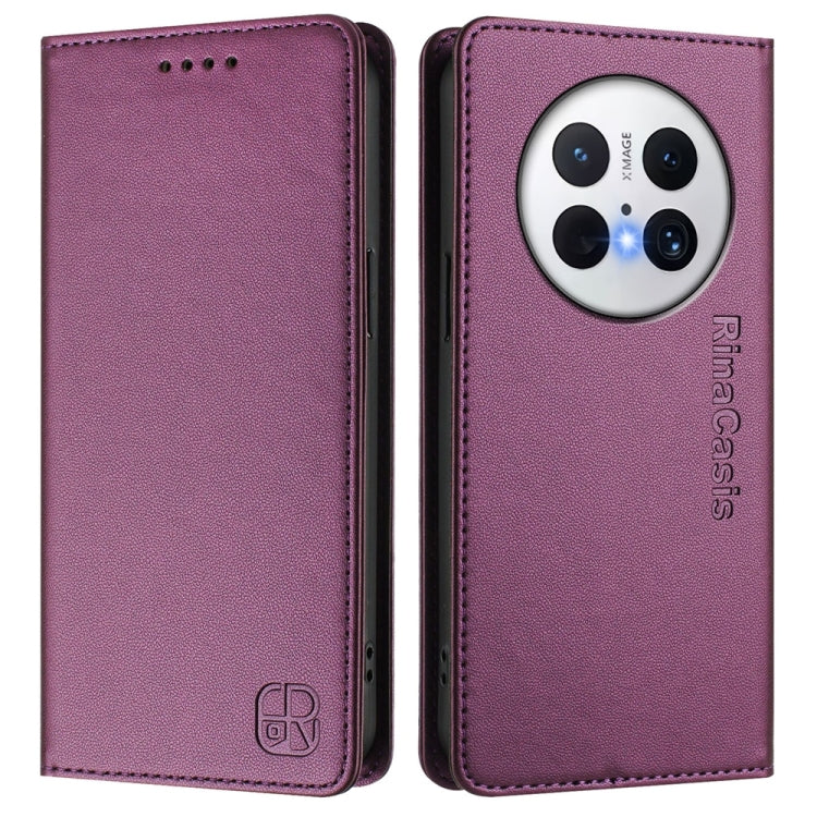 Funda de Cuero con Doble Pliegue y Succión Magnética RFID para Huawei Mate 70 Rc01 (Violeta)