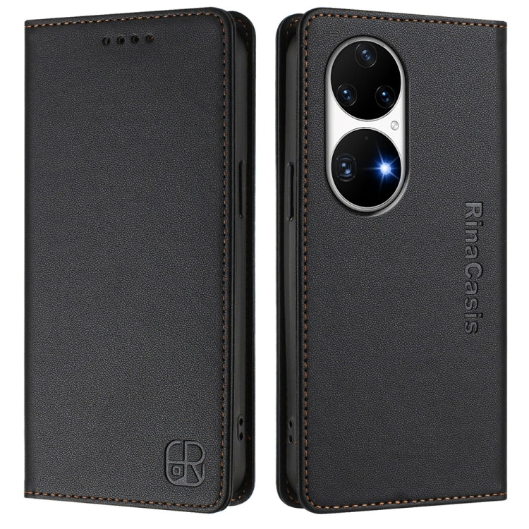 Funda de Cuero con Doble Pliegue y Succión Magnética para Huawei P50 Pro Rc01 (Negra)