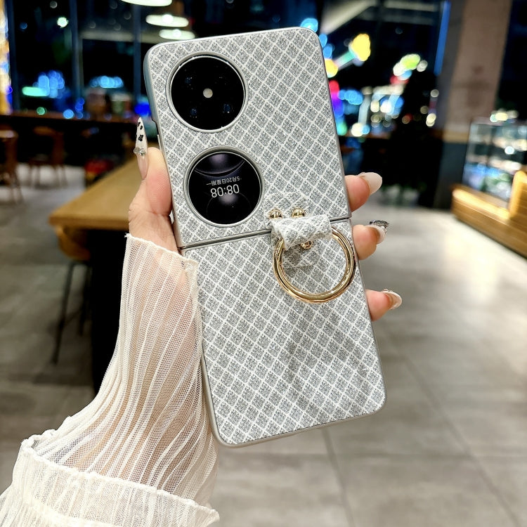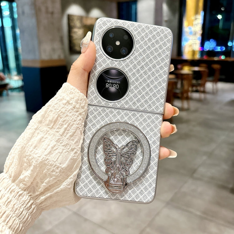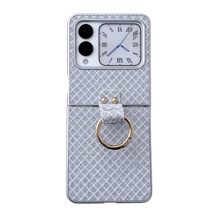 Funda para Teléfono Huawei P50 Pocket con Diseño de Rombos y Diamantes Brillantes y Anillo (Plateada)