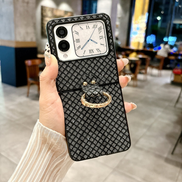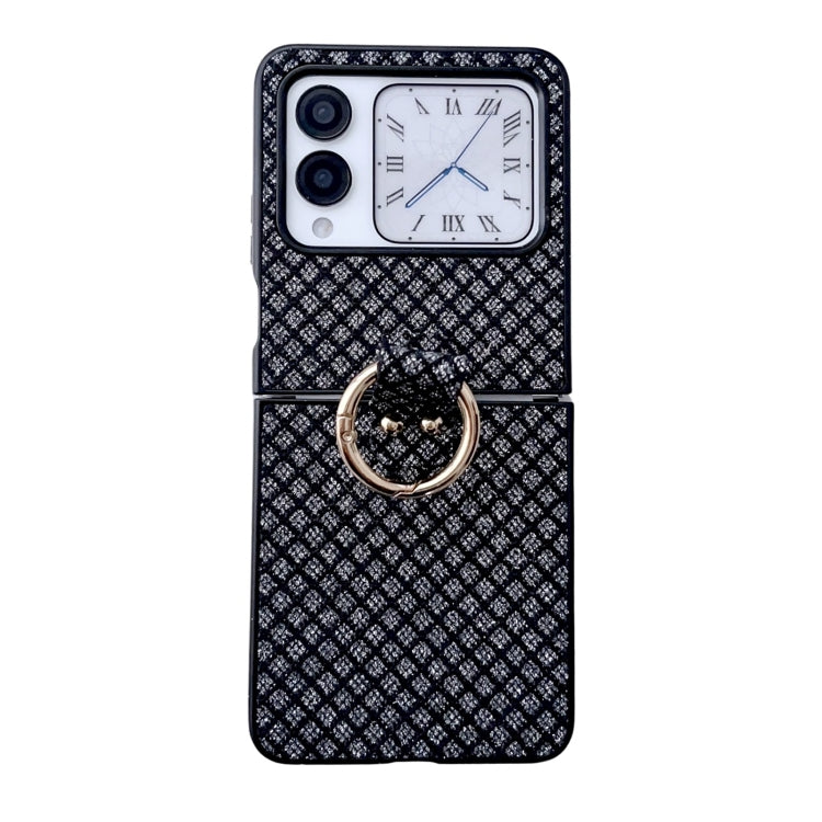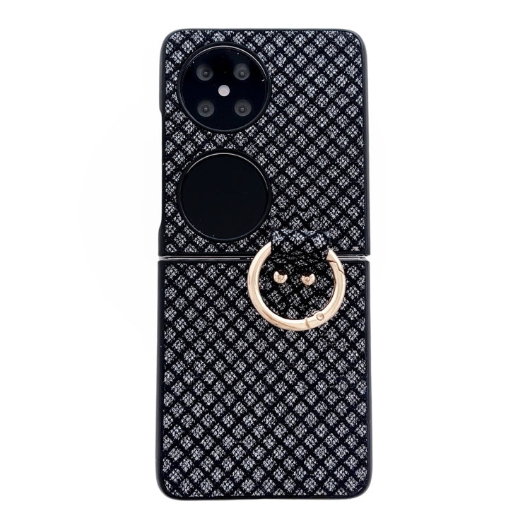 Funda para Huawei P50 Pocket con Diseño de Rombos, Diamantes Brillantes y Anillo (Negro)