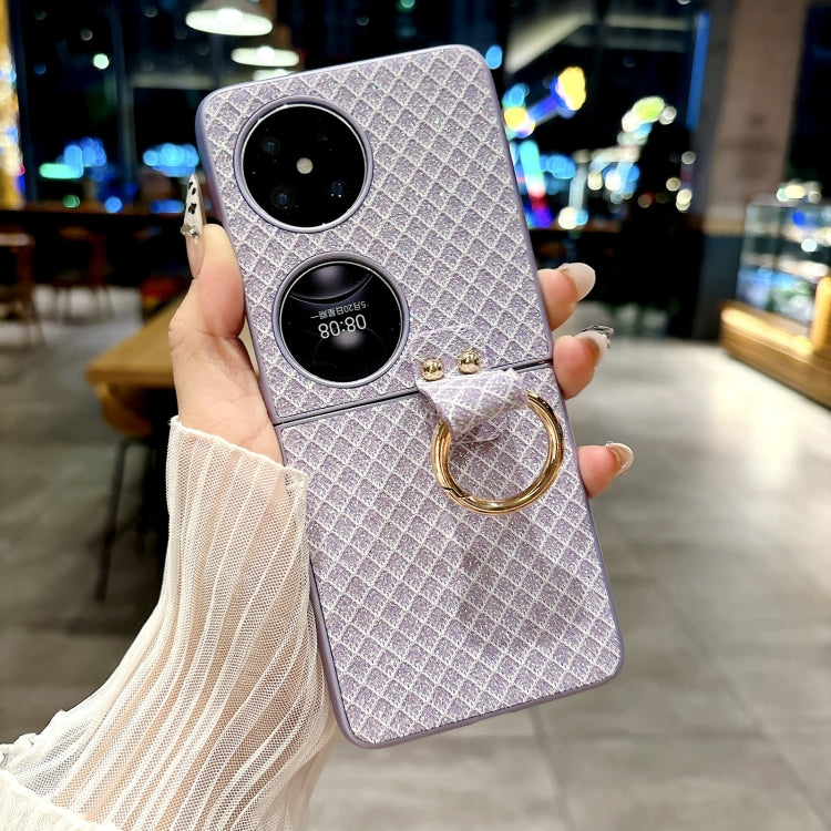 Funda para Teléfono Huawei P50 Pocket con Diseño de Rombos, Diamantes Brillantes y Anillo (Morado)