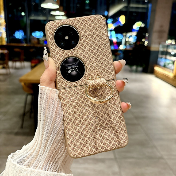 Funda para Teléfono Huawei P50 Pocket con Diseño de Rombos, Diamantes Brillantes y Anillo (Dorado)