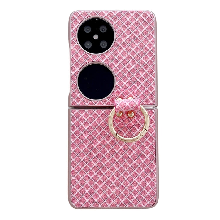 Funda para Teléfono Huawei P50 Pocket con Diseño de Rombos, Diamantes Brillantes y Anillo (Rosa)
