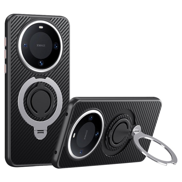 Funda Fibra de Carbono Magsafe Huawei Mate 60 con Soporte Giratorio 360° (Negro)