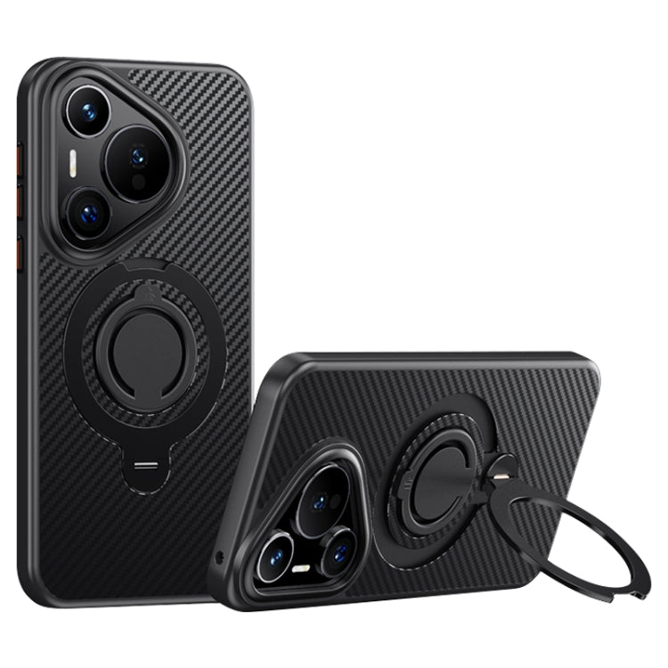 Funda Fibra de Carbono Magsafe para Huawei Pura 70 Pro/70 Pro+ con Soporte Giratorio 360 (Negra)