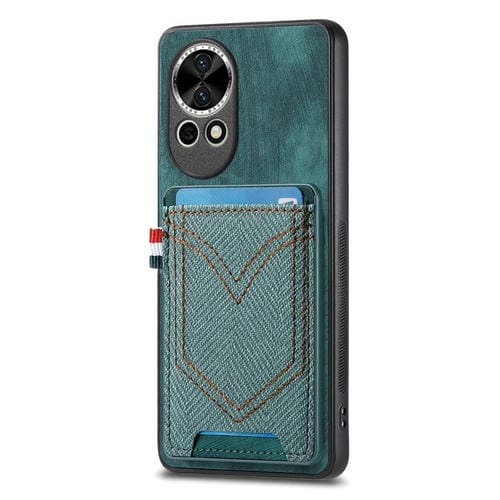 Funda de Piel con Textura Vaquera para Huawei Nova 13 con Ranura para Tarjetas (Verde)